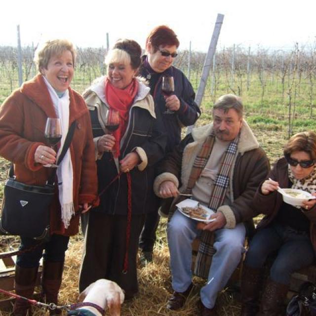 Das Wetter spielte an diesem Tag mit, es war ziemlich kalt und windig aber dafür schien die Sonne und unsere gute Laune, die wir alle mitbrachten versüßte den fantastischen Rotwein.
